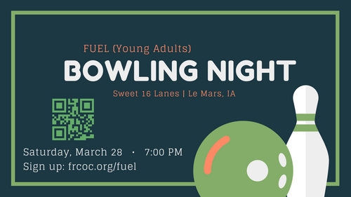 Tag a long for a fun and casual night of bowling at Sweet 16 Lanes in Le Mars! We'll meet in the FRC north parking lot and carpool to Le Mars together! Sign up below!
