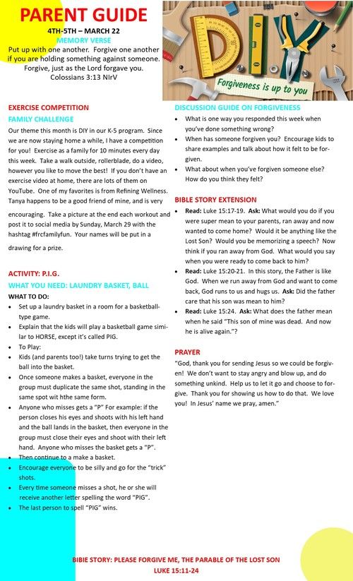 Here are your resources for Sunday School this week! Check out our new family challenge!