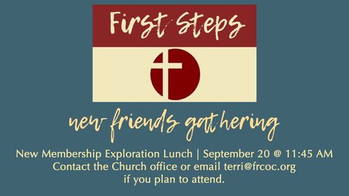 Our next First Steps in on September 20 at 11:45am. Please contact the church office at 712-737-4909 or email [email protected] if you are planning to attend. We look forward to seeing you there.