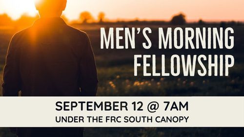 Join us for Men's Morning Fellowship September 12 @ 7am under the South Canopy at church. There will be some light refreshments, a small devotion, and a time to fellowship with others.