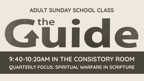 The Guide is an Adult Sunday school class that meets in the Consistory Room between the services (approx. 9:40-10:20am). This class focuses each week on a specific passage of scripture related to a central theme. The current Quarterly Focus is Spiritual Warfare in Scripture. Several different teachers guide the attendees through careful and thought provoking analysis of the scriptures studied.