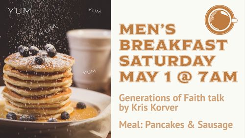 Men - Join us on May 1 at 7am for a breakfast of pancakes and sausage. Kris Korver will share a talk about the Generations of Faith specifically for men.