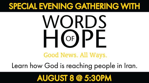 We have a special opportunity on Sunday evening at 5:30pm to hear from Jon Opgenorth, President of Words of Hope., The Persian Ministries Director will also be sharing about the amazing ways God is using Words of Hope in one of the hardest to reach places on earth, Iran. Join us in-person for this special opportunity to learn how God is reaching the people in Iran.