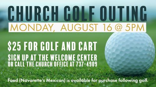 We would love to see you at our Golf Outing Monday, August 16 @ 5pm at Landsmeer Golf Club. It is $25 for golf and a cart. All levels of play are welcome. Food (Navarette's Mexican) is available for purchase following golf.