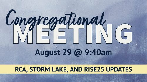 Our next Congregational Meeting will be between our two services on Sunday, August 29... approx 9:40am. Join us to find out the newest updates about the RCA (Reformed Church in America) denominational discernment. We will also have Ricky Sanchez joining us to provide updates on what he is doing Storm Lake.