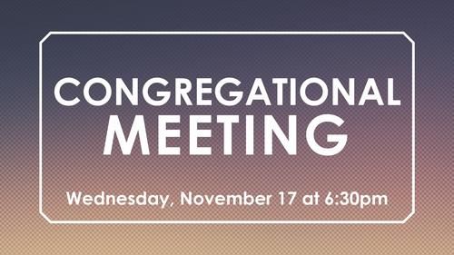 Our next Congregational Meeting will be Wednesday, November 17 at 6:30 in the Sanctuary. At this meeting we will discuss the results from the General Synod and the implications for our congregation.