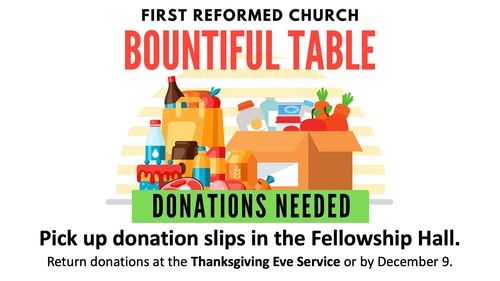 the table in the Fellowship Hall by Thursday, Dec. 9. Financial donations to enable us to purchase the perishable items are welcome.