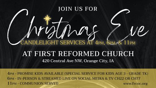 Our Christmas Eve Candlelight services are at 4pm, 6pm, and 11pm.
