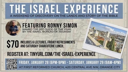 On Friday, January 28 (6pm-9pm) - Saturday, January 29 (9am-4pm), First Reformed Church is hosting a mini-conference titled The Israel Experience. This conference is a weekend of discovery on the lands and story of the Bible, featuring Ronny Simon, 2011 Guide of the Year by the Israeli Bureau of Tourism.