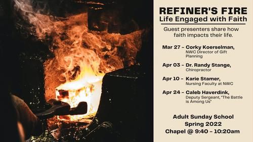 Refiner's Fire: Life Engaged with Faith is an Adult Sunday school class offered February 20 - April 24 at 9:40am in the Chapel. With this class we've had the great opportunity to hear from some professionals in our community as they talk about how faith impacts their life.