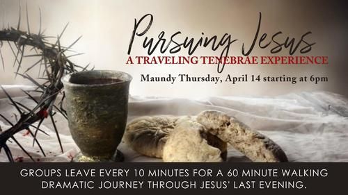 This year FRC is offering a special worship experience on Maundy Thursday, Pursing Jesus: A Traveling Tenebrae Experience. This service will take you on a walking dramatic journey in "Living Nativity" format throughout the church as we follow Jesus through his last evening.