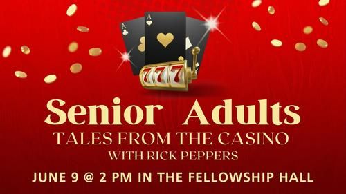 Join us for our next Senior Adults (ages 65+) gathering on June 9 at 2 pm. Rick Peppers, a former casino security guard, will provide some Tales from the Casino.