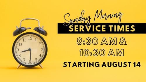 On Sunday, August 14, we will return to our Sunday Morning worship times of 8:30 and 10:30. Join us for uplifting worship, biblically aligned messages, and welcoming people.