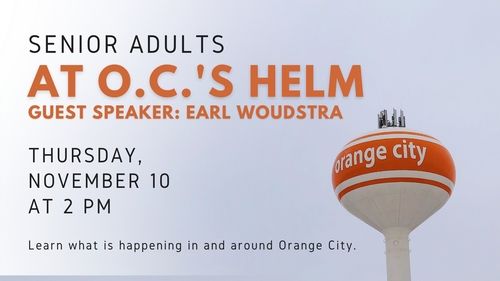 On Thursday, November 10, at 2 pm, our Senior Adults will have guest speaker Earl Woudstra. Earl is Orange City's Administrator. Come learn what is happening in and around Orange City.