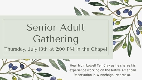 Senior Adults meets on Thursday, July 13 at 2 PM in
