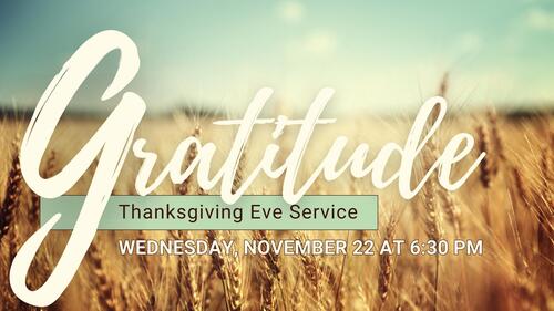 Join us for the Thanksgiving Eve service at 6:30 pm as we testify and respond to God's faithfulness and providence over this past year. Expect to hear from our pastors, elders, and congregation members. Come thinking of what you are thankful for this year.