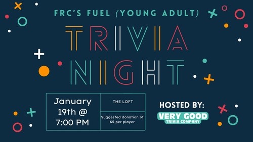 FRC's FUEL (Young Adults Group) meets in the Loft on January 19 at 7:00 pm for Trivia Night. This night is hosted by the Very Good Trivia Company. It will be a fun time of connection and competition. Let Allie Haverdink know that you are coming by emailing her. Please bring $5 for the tournament entry fee.
