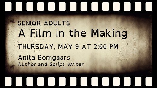 Our Senior Adults will meet on Thursday, May 9, at 2:00 pm. Anita Bomgaars is writing a screenplay. She will share the process and how her screenplay came to be.