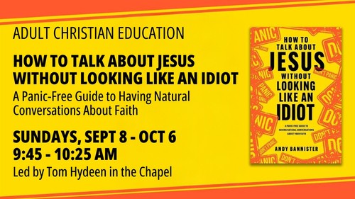 Our Adult Education classes begin on September 8 between the services (9:45-10:25 AM). In the chapel, Tom Hydeen will lead a class through the book How to Talk About Jesus Without Looking Like an Idiot.
