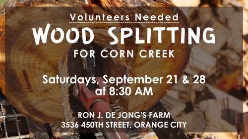 Join us out at Ron J. De Jong's farm (3536 450th Street, Orange City) on Saturdays September 21 & 28 at 8:30 am to cut wood for Corn Creek. Corn Creek is a Native American reserve by Parmelee, South Dakota that we've been supporting for many years. Just a few hours of time can heat their homes for days.