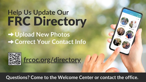- Update your information on Church Center at frcoc.churchcenter.com.