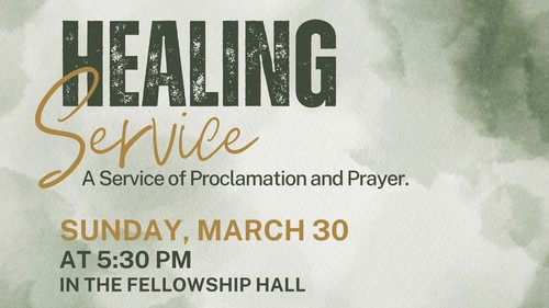 Join us for a special Healing Service on Sunday, March 30, at 5:30 pm, a time set apart for restoration, renewal, and hope. In this service of proclamation and prayer, we will gather in faith to seek God’s healing—physically, emotionally, and spiritually—through Scripture, prayer, and the power of community. Whether you are in need of healing yourself or wish to stand in the gap for others, we invite you to come and experience the presence of God in a profound and personal way. All are welcome!