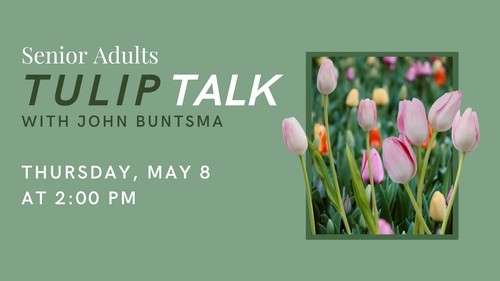 Join us for our next Senior Adults (65+) gathering at 2:00 p.m. on Thursday, May 8, in the Fellowship Hall! We’re excited to welcome John Buntsma, who oversees the tulip beds in Orange City. John will be sharing a special presentation called "Tulip Talk," where he’ll explore the rich history and cultural significance of tulips. Come enjoy an afternoon of learning, fellowship, and inspiration — we look forward to seeing you there!
