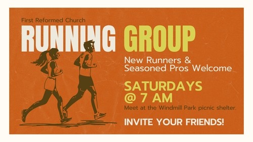 New running group starting this week! Everyone welcome, whether you are running for the first time or thinking about a marathon. We will meet Saturdays, 7 AM, starting June 21, by the picnic shelter at Windmill Park. For questions, please see Eli Haverdink or Pastor Fred. Bring a water bottle!