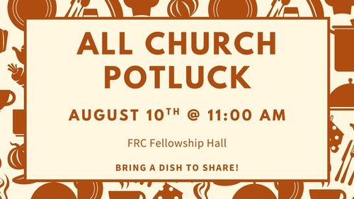 Everyone is invited to our All-Church Potluck on Sunday, August 10 at 11:00 AM in the Fellowship Hall, right after the 9:30 AM service.