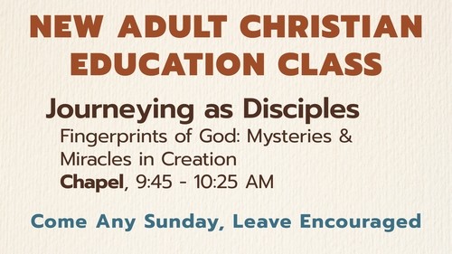 Where do we see God’s handiwork in the world around us? Join us between services (9:45–10:25 AM) in the chapel for Fingerprints of God: Mysteries and Miracles in Creation. Each week features a different community speaker sharing from their field of expertise.