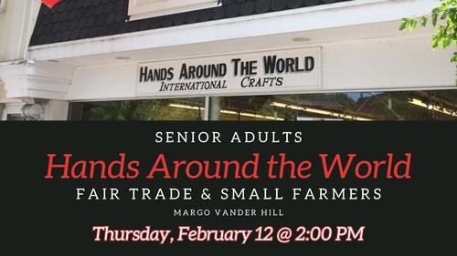 We are pleased to welcome Margo Vander Hill from Hands Around the World, a local fair trade shop that offers unique, handcrafted items from around the world while supporting small farmers and artisans. Margo will be joining us to share about Hands Around the World and its mission.
