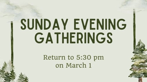 Our Sunday Evening Gatherings will return to 5:30 PM on Sunday, March 1.